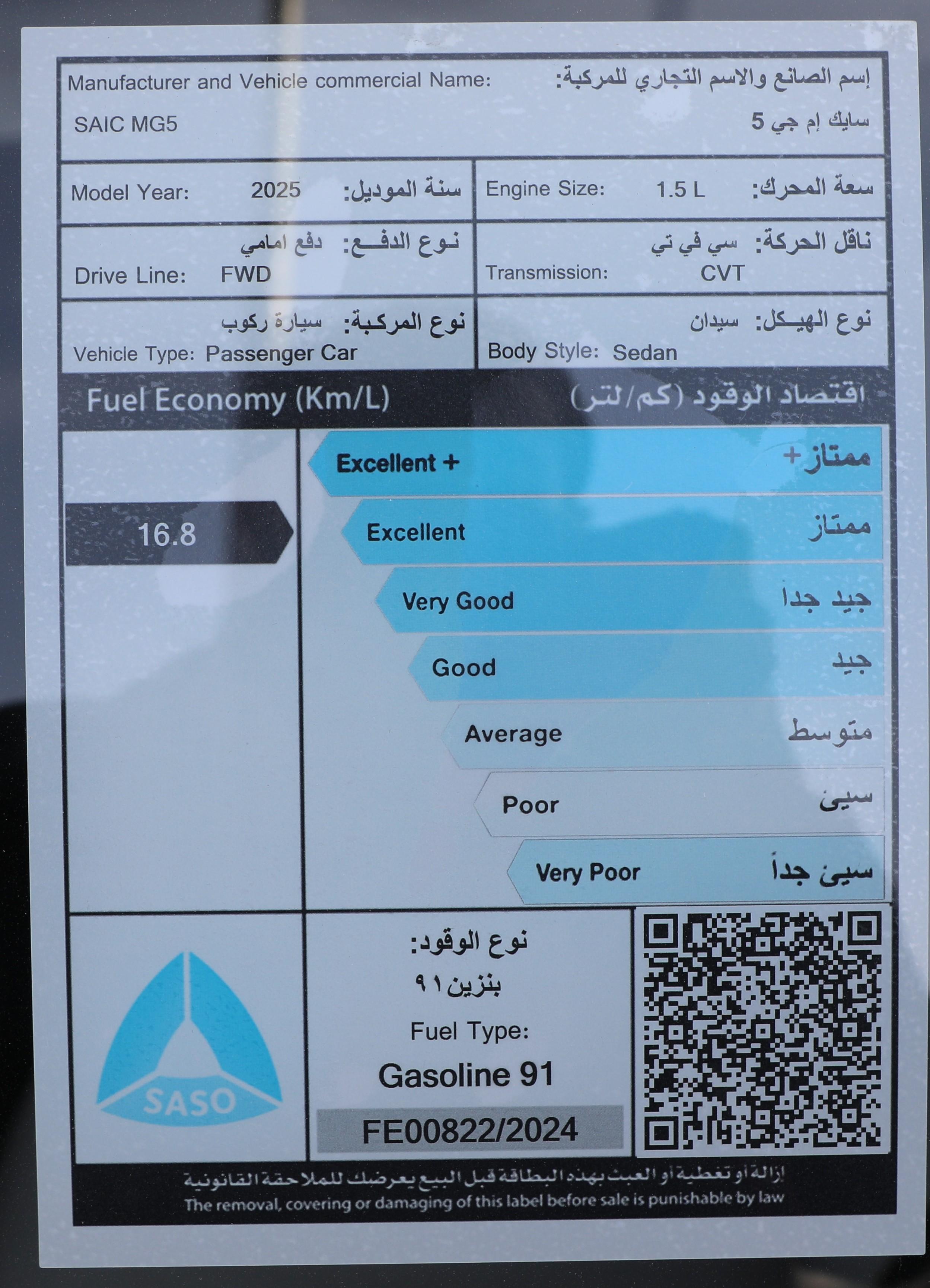 - استهلاك الوقود: 16.8